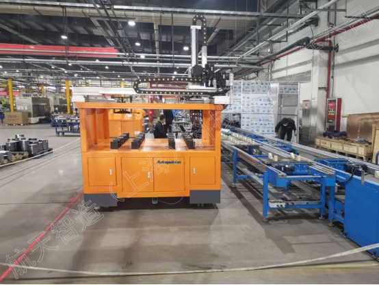組成:AGV+桁架式三坐標機械手+緩存線+調(diào)度系統(tǒng);