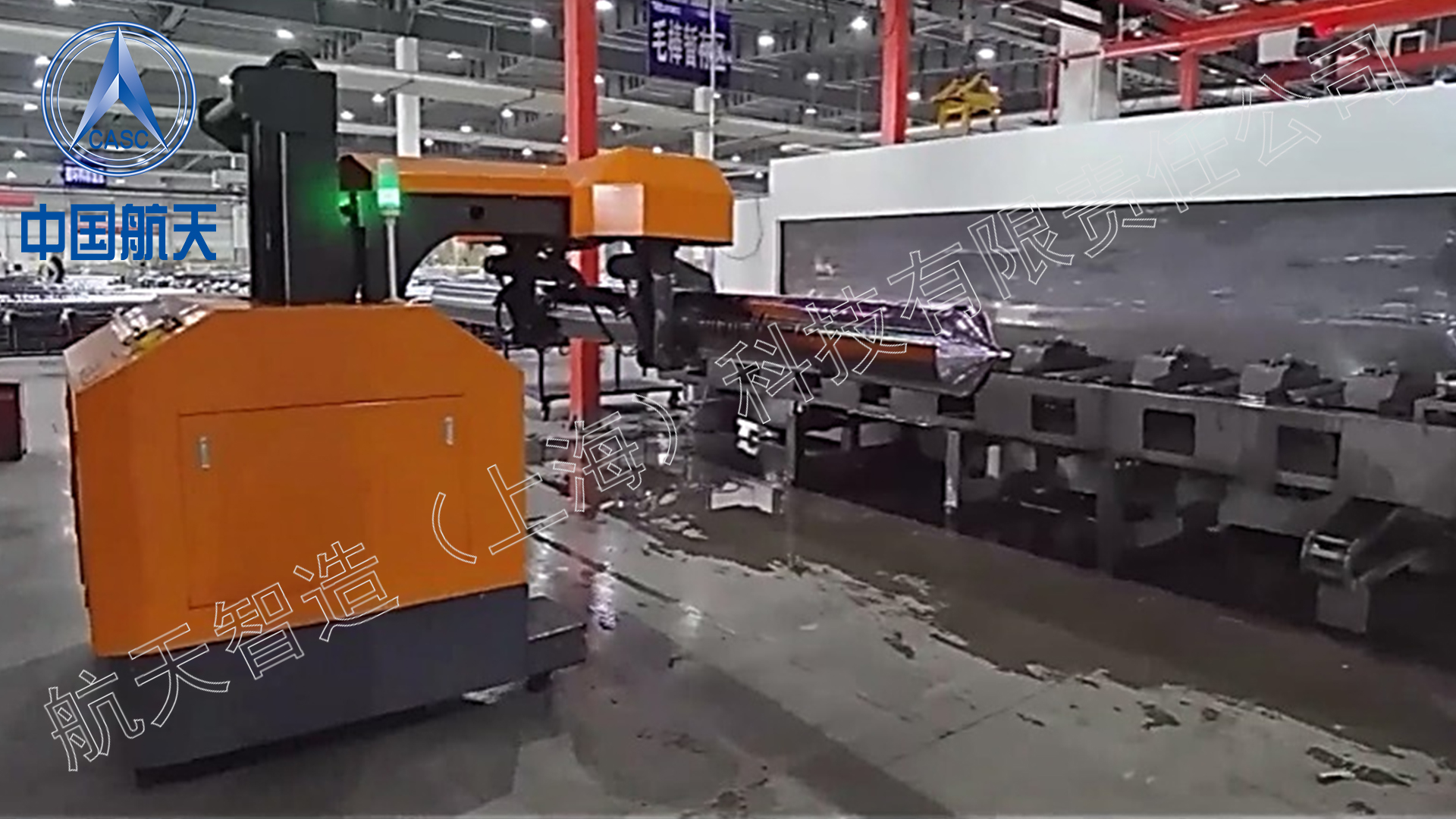 航天智造(上海)科技有限責(zé)任公司研究開發(fā)了AGV機(jī)器人、桁架機(jī)械手系統(tǒng)、積放式檢測(cè)線、激光打碼和CCD讀數(shù)的質(zhì)量追溯系統(tǒng),用于單晶硅生產(chǎn)流程中的單晶爐上下料、硅棒的截?cái)嗌舷铝?、開方和磨倒等機(jī)加工上下料到電性能檢測(cè)和外形尺寸檢測(cè),具備協(xié)同作業(yè)功能全、定位精度高、適應(yīng)非標(biāo)準(zhǔn)工件的柔性好、積水地面和多塵及腐蝕性環(huán)境下的魯棒性強(qiáng)、數(shù)字化程度高等優(yōu)勢(shì),為降低該產(chǎn)業(yè)的人工依賴度、降低人力和管理成本,提高生產(chǎn)節(jié)拍和質(zhì)量水平提供了卓越的生產(chǎn)力支撐。