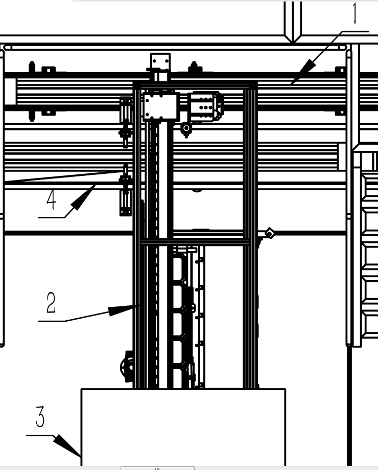 設(shè)計(jì)輸入前置條件 硅片每一刀料是一個(gè)料號(hào)含有物料的型號(hào)身份信息,一刀料約3200片, 4個(gè)載體治具進(jìn)行承載。特定型號(hào)硅片需在對(duì)應(yīng)清洗機(jī)設(shè)備中進(jìn)行清洗。設(shè)備動(dòng)作流程:上料機(jī)械手將清洗機(jī)空載體治具抓取放置在空治具回流線體。滿載硅片治具通過(guò)輸送線體(帶水輸送線)輸送到清洗機(jī)臺(tái)擋停,識(shí)別。機(jī)械手到輸送位抓取,再次判定確認(rèn)載體治具的硅片滿足清洗型號(hào)設(shè)定條件。上料機(jī)械手優(yōu)先放置在清洗機(jī)空置的上料位(為雙上料工位)。若清洗機(jī)上料工位有料,放置緩存料箱。整個(gè)流程確保清洗機(jī)不停機(jī)待料。 設(shè)計(jì)思路及措施 硅片載體治具和上下料機(jī)械手兩部分裝置作用和貫穿于輸送、緩存、清洗分片、空治具回流輸送等系統(tǒng),為重要設(shè)計(jì)要素。 硅片治具載體設(shè)計(jì),從硅片分裝、信息記錄、輸送、機(jī)械手抓取、清洗機(jī)分片、空治具回流作為載體。設(shè)計(jì)中首先確保清洗分片的定位,傾角功能。治具承載能力滿足一刀料約800片的容量和負(fù)載。設(shè)計(jì)安裝RFID芯片記錄刀號(hào)信息,設(shè)計(jì)符合輸送截停阻擋功能接口。設(shè)計(jì)治具載體有上下料機(jī)械手夾爪抓取位置。 機(jī)械手設(shè)計(jì),從硅片滿載治具的輸送、緩存、清洗分片位的上料、空治具回流等實(shí)現(xiàn)承上啟下的轉(zhuǎn)序功能。機(jī)械手設(shè)計(jì)橫移行程覆蓋各功能模塊區(qū)域,垂直提升、降滿足各高度要求。機(jī)械手設(shè)計(jì)滿載治具承載力20Kg,結(jié)構(gòu)穩(wěn)定、可靠。垂直提升選用帶抱閘伺服電機(jī)。橫移行程覆蓋空治具回流線,滿載輸送線,緩存線、清洗分片上料位區(qū)域,機(jī)械手運(yùn)行平穩(wěn),無(wú)爬坡,抖動(dòng)現(xiàn)象。橫移采用型材鋼加工安裝導(dǎo)軌,伺服電機(jī)帶減速機(jī)驅(qū)動(dòng),皮帶輪傳動(dòng)。抓取中保證治具不變形,不能對(duì)產(chǎn)品造成2次損傷。在抓取過(guò)程判定確認(rèn)物料信息是否滿足清洗的目標(biāo)要求。滿載治具的輸送線體, 治具緩存裝置,空治具回流輸送線體設(shè)計(jì)高度統(tǒng)一,方便編程和調(diào)試。 02 機(jī) 構(gòu) 設(shè) 計(jì) 上下料機(jī)械手作用和貫穿于輸送、緩存、清洗分片、空治具回流輸送等系統(tǒng),完成各個(gè)功能模塊的硅片治具的上下料轉(zhuǎn)序。俯視圖如圖一所示: