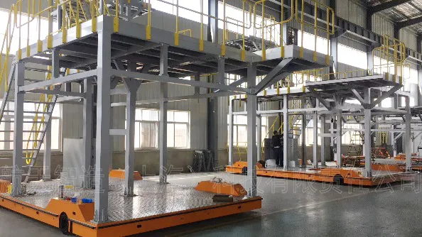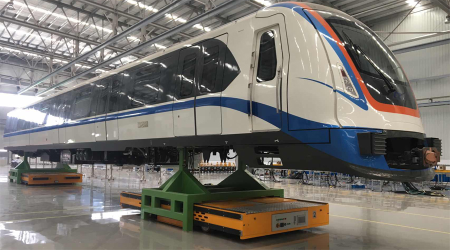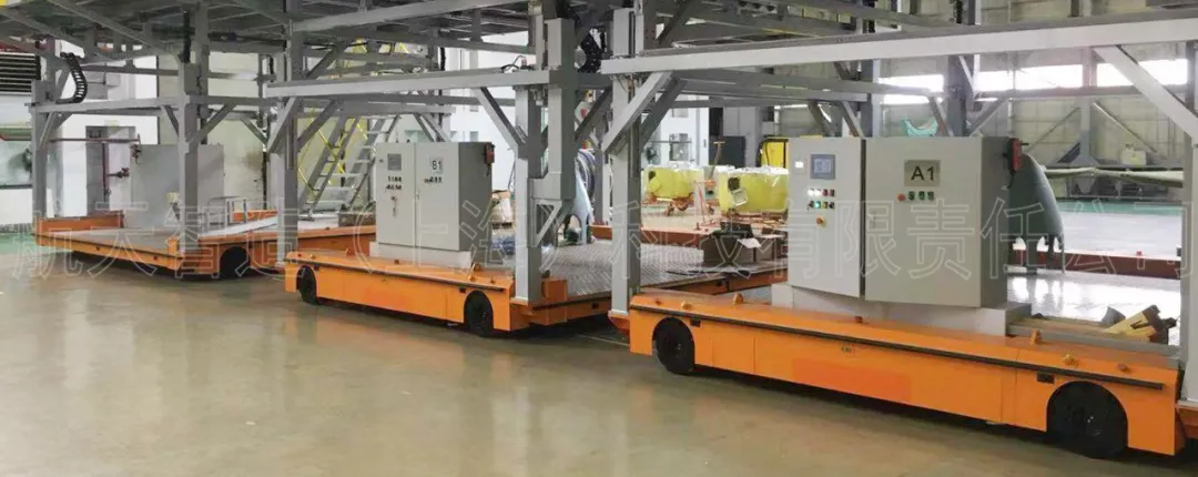 比如用于軌道車輛整車轉運的“2x30T全向舵輪車”、用于衛(wèi)星艙轉運的“3x40T全向舵輪車”、用于動車車體底架轉運的“2x5T麥克納姆輪式車”、用于動車車底線槽轉運的“2x2T麥克納姆輪式車”、用于機塢轉運的的“3x5T麥克納姆輪式車”,都使生產工藝發(fā)生了革命性的變化。