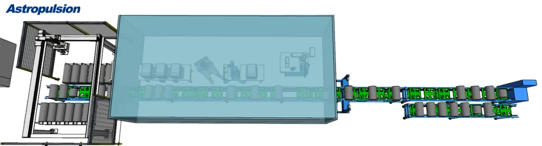 組成: 桁架式三坐標(biāo)機(jī)械手+緩存線+調(diào)度系統(tǒng);